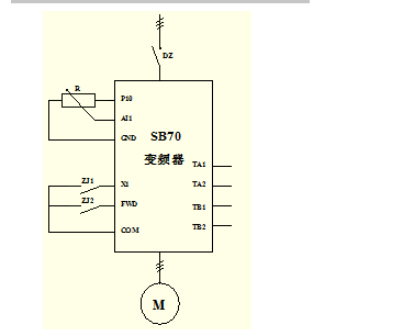 每個(gè)工序的變頻器控制原理基本相同,因此只畫(huà)一張圖作為代表。另外,工段和工序不同,功能設置也有一些差別,表中僅列出泥漿泵SB70G220變頻器功能設置參數,僅供參考。